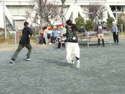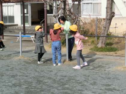 ボール遊びやおにごっこで子どもたちが元気よく遊んでいます。短縄跳びを嬉しそうに見せてくれた人もいます。