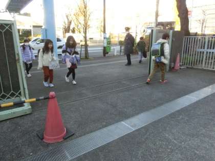 子どもたちが登校してきました。今日はこの冬一番の寒さのようです。