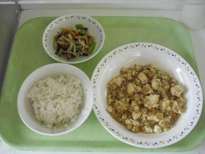7日:ごはん 牛乳 さばの塩焼き 8日:麦ごはん 牛乳 麻婆豆腐