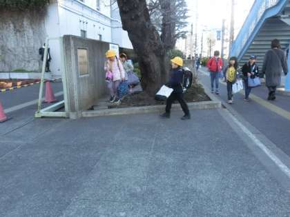 今日も池尻交番のおまわりさんが子どもたちを見守ってくれています。