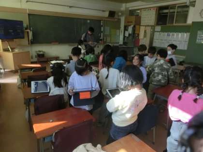 「〇〇〇〇の中には、どんな言葉がかくれているでしょうか。」子どもたちはタブレットを持って次々と問題を出し合っていました
