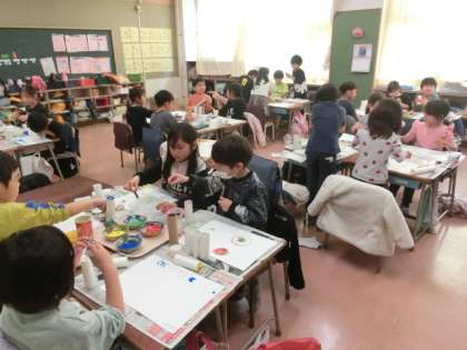 1年生の授業は図工です。