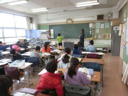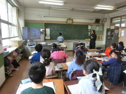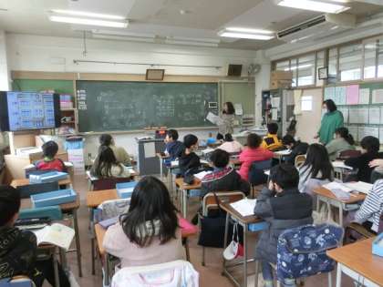 3年生の授業は算数です。かけ算の学習です。