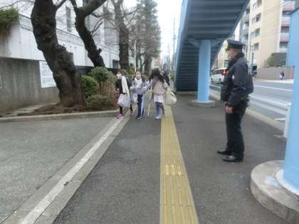 今日も池尻交番のおまわりさんが子どもたちを見守ってくれていました。