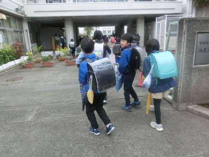 子どもたちが登校してきました。今日は雪の予報になっています。厚手の手袋をしている人たちがたくさんいます。