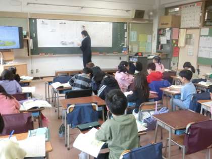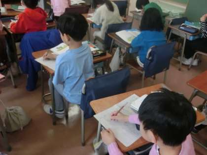 ワークシートに読み取ったことを整理しています。表に記入することで、読み取ったことがはっきりしてきます。