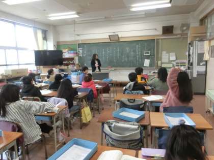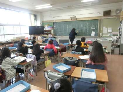 1組の授業は国語です。話す学習です。学校のよいところを出し合って、それを表現します。子どもたちは池尻小学校のよいところをたくさん出していました。自分の学校のよいところをたくさんだすことができるって、とてもすてきなことですよね。