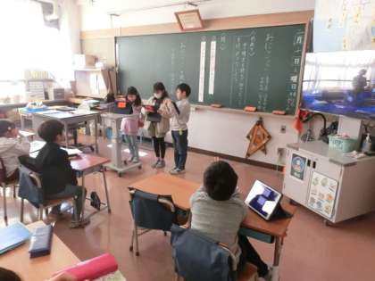 2年生の授業は国語です。説明文の学習で分かったことなどをグループで発表しています。