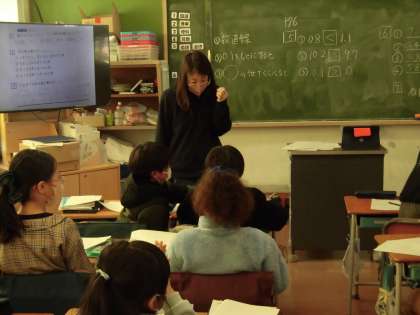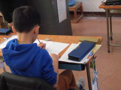 算数は、小数のまとめの学習で練習問題に挑戦していました。プリントに意欲的に取り組んでいます。