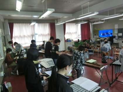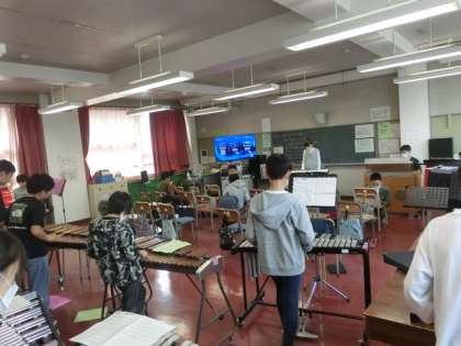 卒業を祝う会で披露する「キセキ」の合奏の練習をしています。
