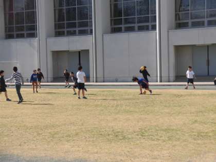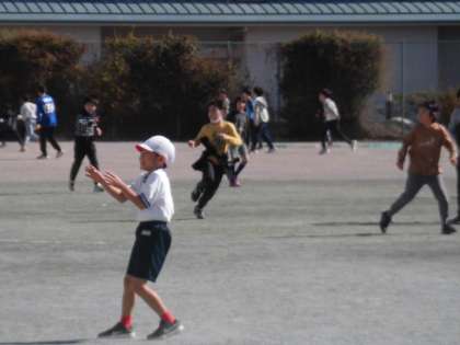 今日は、天気がよいものの風が強い日です。朝、スプリンクラーで水をまきましたが、あっという間に乾き、砂が舞ってしまう風です。ですが、子どもたちは元気です。
