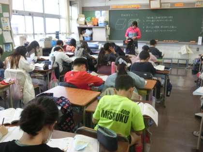 立体の見取り図の学習です。一目見ただけでその立体の形が分かる見取り図を描くのは、とても難しいです。わたしも小学生のころ苦労したことを覚えています。早く描けた人は、まだの人に教えてあげていました。