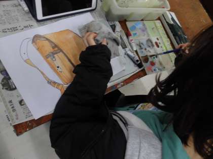 図画工作は、個々の進捗状況に合わせて作品の完成や振り返り、発展課題に取り組んでいます。ランドセルの絵も多くの子が完成していました。小学校生活で使い続けたランドセル。大切に保管し続けるのは難しいと思うので、描いたランドセルの絵を大切にし、いつか懐かしく小学校生活を思い出してほしいものです。