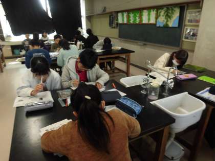 理科では、学習のまとめを進めています。プリント等も活用しながら、振り返りを行います。