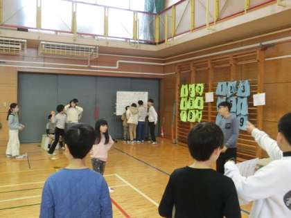 いろいろな出し物があります。お店屋さんになっている人、お客さんの人、みんな楽しそうです。