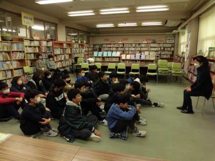 すばなしの会の方たちが読み聞かせや本の紹介をしてくださいました。6年生にとっては、最後の読み聞かせの時間です。集中して聞き、すばなしの会の方たちからお褒めの言葉をいただきました。