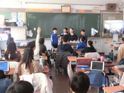 「放課後の過ごし方」「電子機器」「一日の過ごし方」など、さまざまなテーマについて、発表をしていました。発表の内容が興味深く、発表の際の自作の円グラフもとても効果的でした。