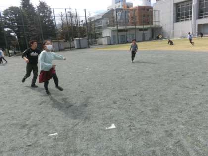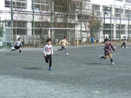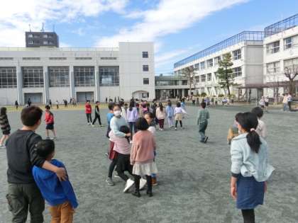 3年生とおにごっこをしていたら、5年生が入ってきてくれました。大人数でのおにごっこです。全員がつかまり、新しいオニ決めの時は、人がたくさん集まりすごいことになりました。