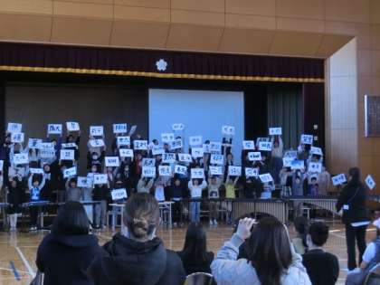 最後は、合唱と合奏です。自分の名前のプレートを出しながらの合唱は、聴いていて、子どもたちのこれまでの歩みを感じることができ、ジーンとしてしまいました。
