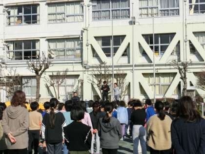 表彰の後、代表委員の人から、今月の目標について話がありました。