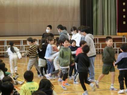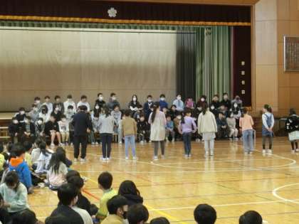 全校のみんなと6年生とが触れ合う「思い出バスケット」の時間です。