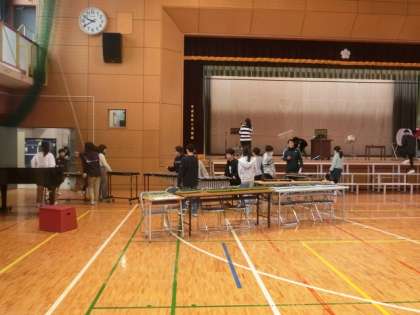 6年生や在校生が退場した後には、6年生が演奏で使った楽器が残っています。声をかけられた5年生は、楽器の片づけを手伝ってくれました。いやな顔一つせず、手伝ってくれる5年生。6年生の持っていた最上級生のバトンは、5年生に引き継がれます。