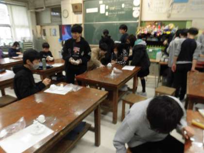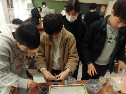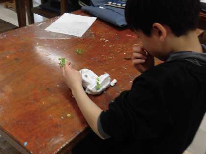図工では、紙粘土と植物の飾りやビー玉などを使って作品づくりをしています。今日は、色もつけるようです。こだわりの作品が完成しそうです。