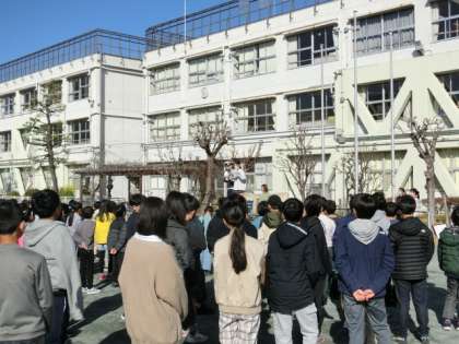 校長の話の後、代表委員から能登半島地震の募金の報告がありました。池尻小学校で、95,533円集まりました。被災地の方々の生活に生かしてもらいたいと思います。