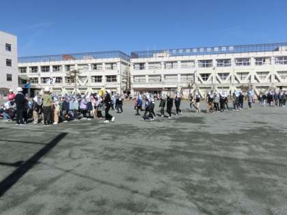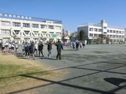 区の一斉防災訓練に合わせ、池尻小学校でも避難訓練を行いました。