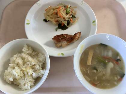 雑穀ご飯・すいとん・魚の七味焼き・和風サラダ