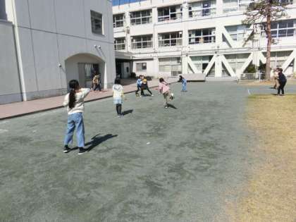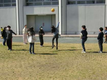 おにごっこ、ドッジボール、バレーボール、サッカーなどいろいろな遊びをしています。