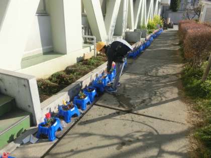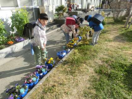 早く登校した1年生や2年生が育てている花に水をあげていました。
