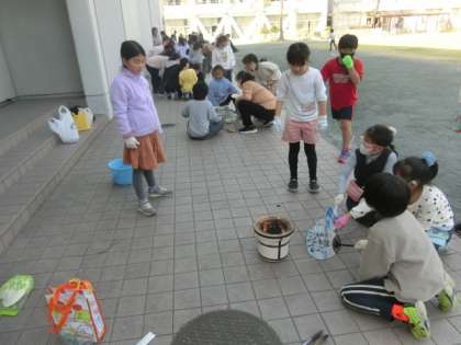 3年生は、保護者の方々にご協力をいただき、七輪体験をしました。