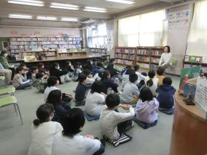 すばなしの会の方々がいらしてくださり、お話を聞かせてくれました。本を見ずに語るその口調に、子どもたちは圧倒されるように聴きいっていました。