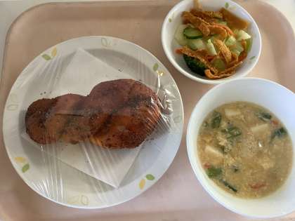 ココア揚げパン・中華風コーン卵スープ・パリパリサラダ