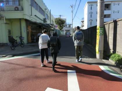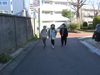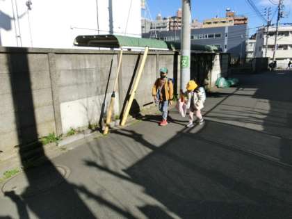 子どもたちが登校してきました。お日さまは出ているのですが、北風が強く風にあたるととても寒く感じます。