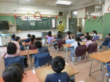 目の前の担任の先生の話を子どもたちはしっかりと聞いています。早く小学校生活になじんでほしいと思っています。