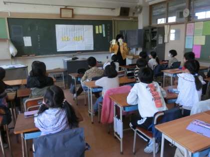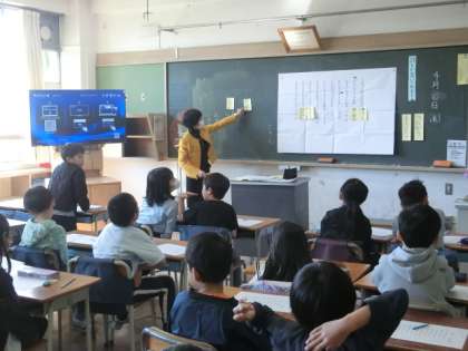 詩の情景を思い浮かべながら、適した言葉を選び出していました。先生の顔を見てしっかりと話を聞いている子どもたちです。