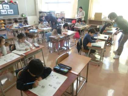 1年生の教室では、鉛筆を使っての線のなぞりの学習をしていました。