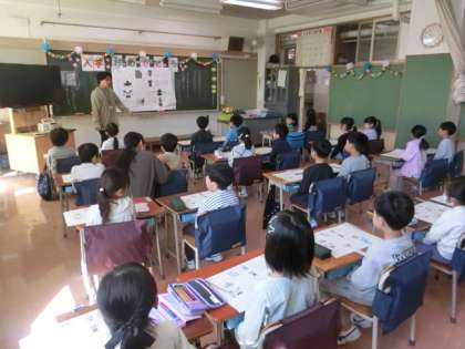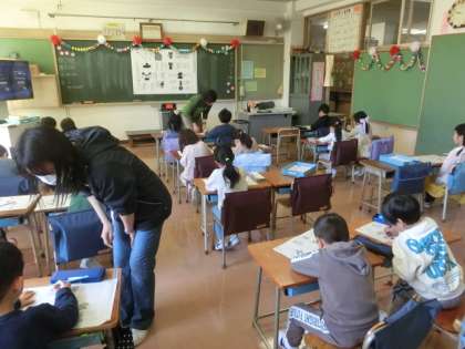 字を書くときには、しっかりと鉛筆をもっていろいろな方向に鉛筆を動かすことが必要になります。子どもたちは、先生の話を聞きながら、しっかりと取り組んでいました。