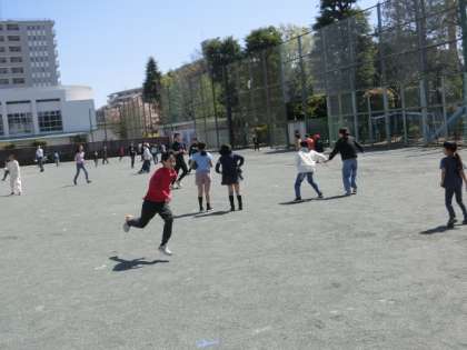高学年の人たちのおにごっこはすごい迫力です。子どもたちを追う先生の走りもすごい迫力です。
