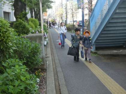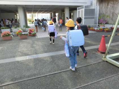 子どもたちが登校してきました。今日は天気予報でも暑くなるとの予想が出ています。