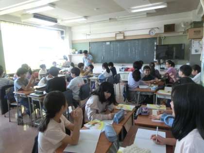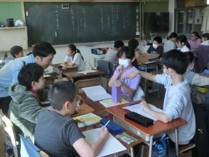 各グループごとに短文の作成をしていました。子どもたちが、意欲的に楽しそうに学習に取り組んでいます。6年生1組2組とも、授業態度がとてもすてきです。