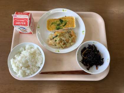 牛乳・ご飯・卵焼き・春雨サラダ・ひじきの煮つけ