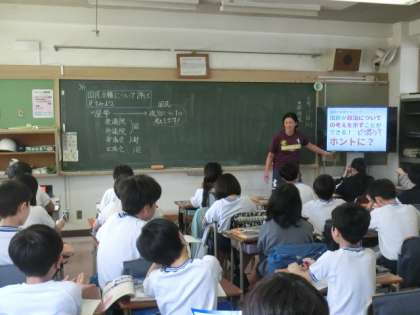 隣の教室では、社会の学習です。政治の学習です。選挙について考えていました。国民の代表を選ぶのが選挙です。今の投票率を投げかけ、子どもたちの考えを聞いていました。