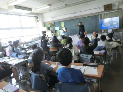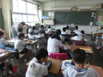 4年生の授業は算数です。大きな数の学習です。0が多くなると、位が分かりにくくなります。位のとり方、しっかりと理解してほしいです。