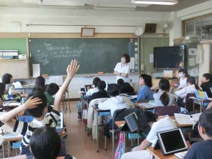 カーテンを開けて今日の天気を確認しています。空の色を見て見ると、真っ青ではなく、うすく雲がかかっているような色をしています。