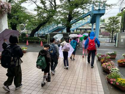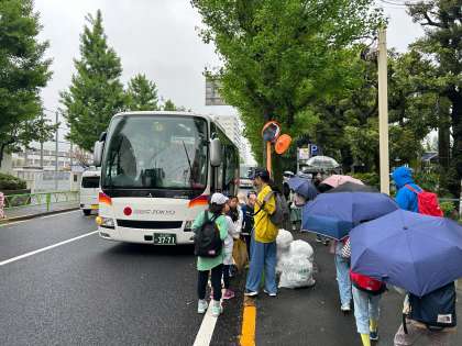 今日は4年生と3年生の遠足です。あいにくの雨のため、行き先が変更になりました。葛西臨海水族園と科学技術館です。見学場所では、班行動になります。4年生、よろしくお願いします。