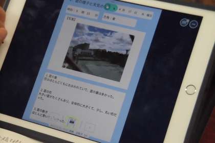 5年生の理科では、「1日の天気は雲の様子によってどのように変わるだろうか」という問いの下で学習が進んでいました。タブレットを使って記録した天気の様子を比較して雲と天気の関係について考えました。
