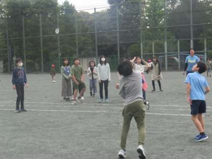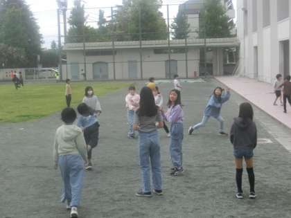 校庭ではおにごっこだけではなく、いろいろな遊びをしている人がいます。